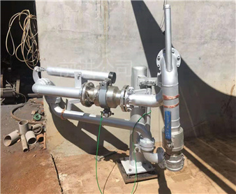 *典型的槽車底部裝卸鶴管,與槽車用快速接頭或者法蘭聯(lián)接,采用五個旋轉(zhuǎn)接頭。介質(zhì)由槽車卸油口經(jīng)鶴管自上而下流入管線內(nèi),采用重力作用下的自流方式就可卸車,接口高度較高時